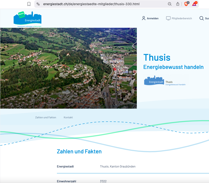 Fälschlicherweise wird Thusis weiterhin auf der offiziellen Webseite Energiestadt als Energiestadt-Gemeinde geführt. Nur wer spitzfindig genug ist, die Bemerkung „letztes Audit“ zu lesen und auch richtig dahingehend zu interpretieren, daß das bedeutet, daß Thusis gar nicht mehr Energiestadt ist, erkennt die Wahrheit. Nicht gerade eine schöne Art, sich zu verkaufen: