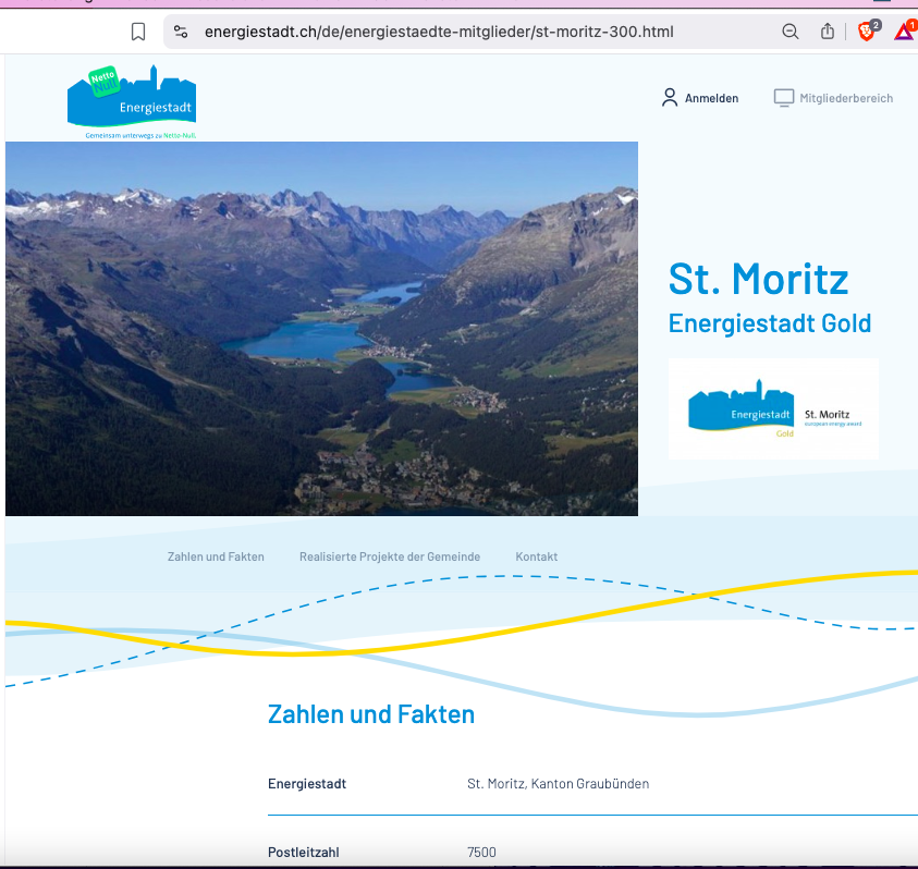 Auch St. Moritz wird auf Energiestadt weiter als zahlende Partnergemeinde geführt, die es gar nicht mehr ist.