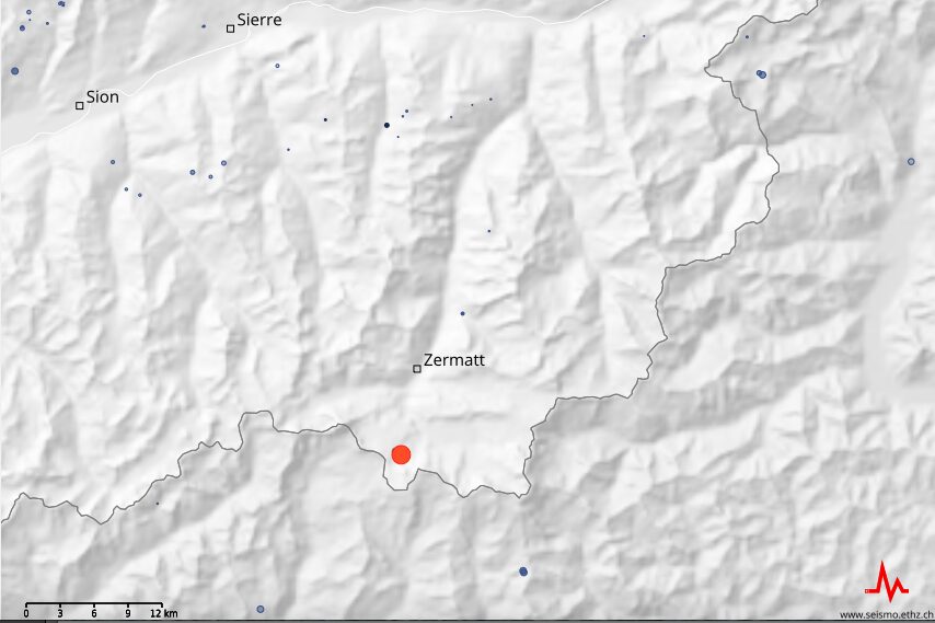 Erneut kam es zu einem Erdbeben bei Zermatt. Der Schweizerische Erdbebendienst an der ETH Zürich hat 9 km südlich vom Dorf beim Matterhorn ein Erdbeben registriert.
