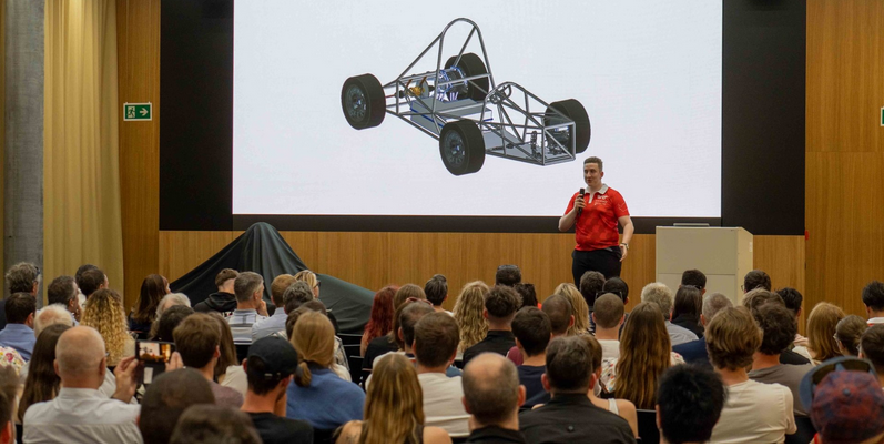 30 Studierende der Ingenieurwissenschaften und der Betriebsökonomie der HES-SO Valais-Wallis, nebenbei auch leidenschaftliche Autoliebhaber, hatten die verrückte Idee, ein vollständig elektrisches Rennauto zu entwerfen und zu bauen.