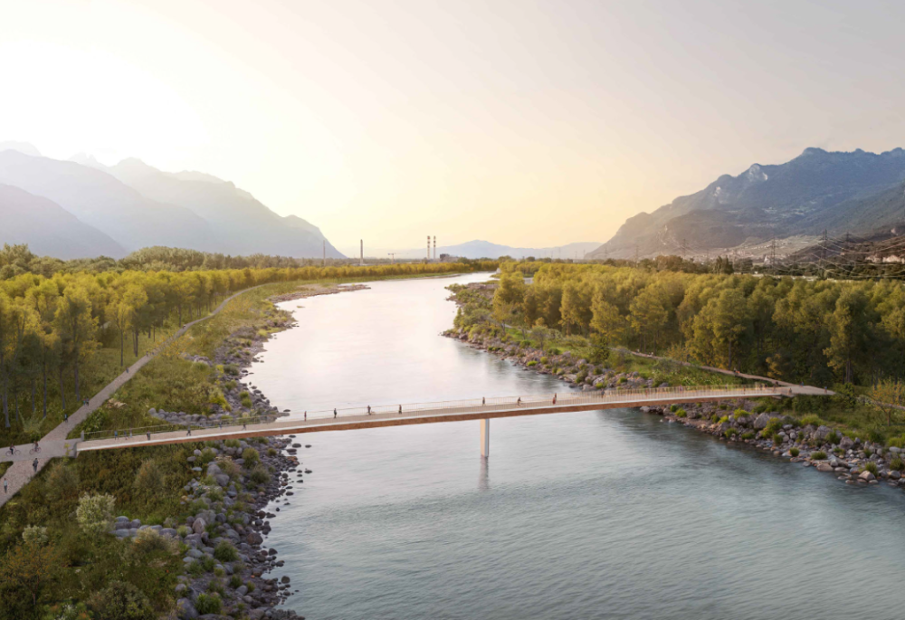 Kanton Wallis fördert Langsamverkehr: Zu Fuß, mit dem Velo, mit Rollschuhen oder auf dem Pferd3 neue Brücken über die Rhone als Verbindungen zwischen dem Waadt und dem Walliser Chablais