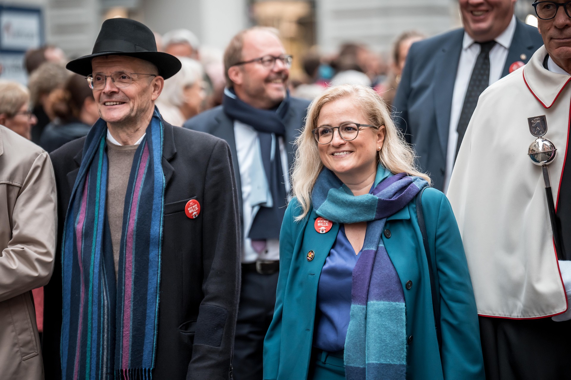 Auch rund 100 tierische Teilnehmer wie Schwarznasenschafe, Eringerkühe und Bernhardinerhunde legten den Weg zum St. Galler Stadttheater zurück.