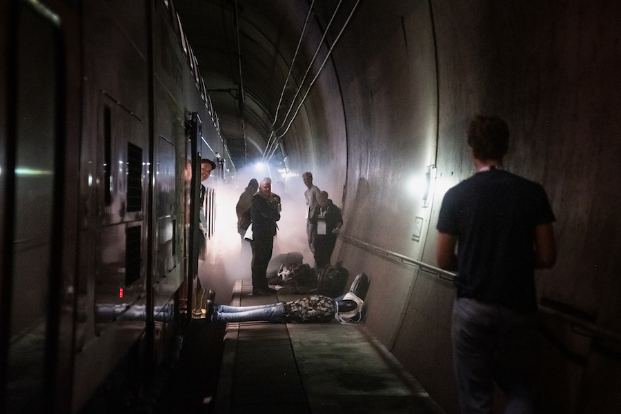 Das Übungsszenario basierte auf einem Brand im Bordbistro eines InterCity-Doppelstockzuges, der aufgrund einer technischen Störung im Tunnel zum Stillstand kam.