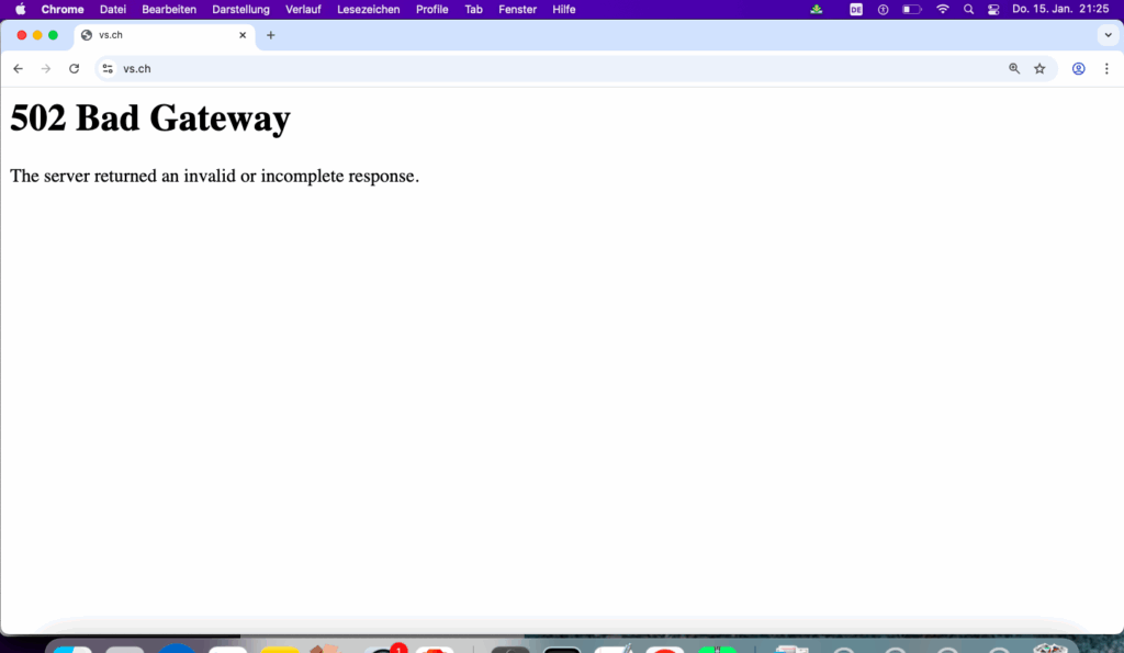 Teilweise kommt auch die Fehlermeldung „Bad Gateway“. Oder die Seite VS.ch lädt nur teilweise. Es scheint chaotisch zu sein.