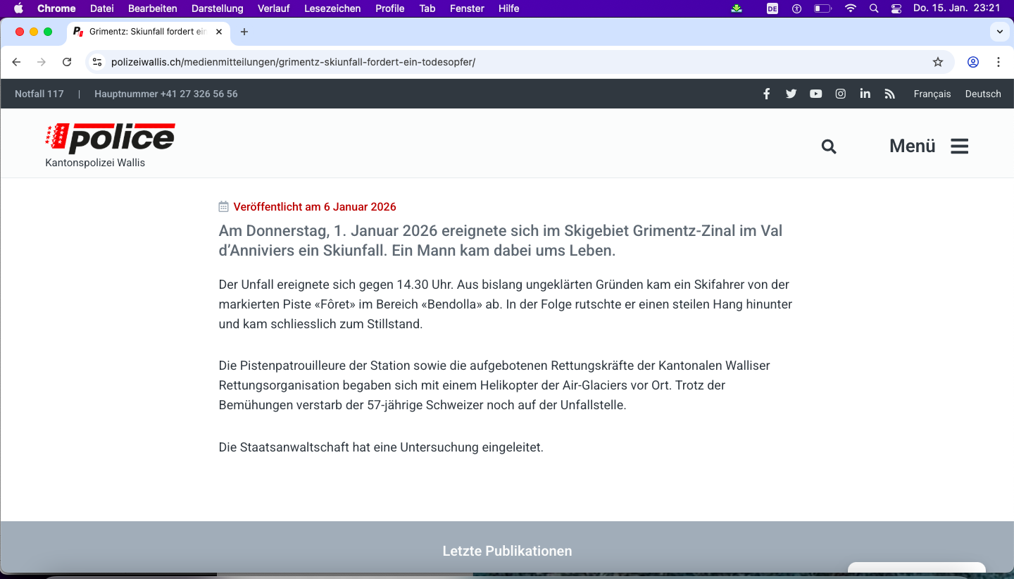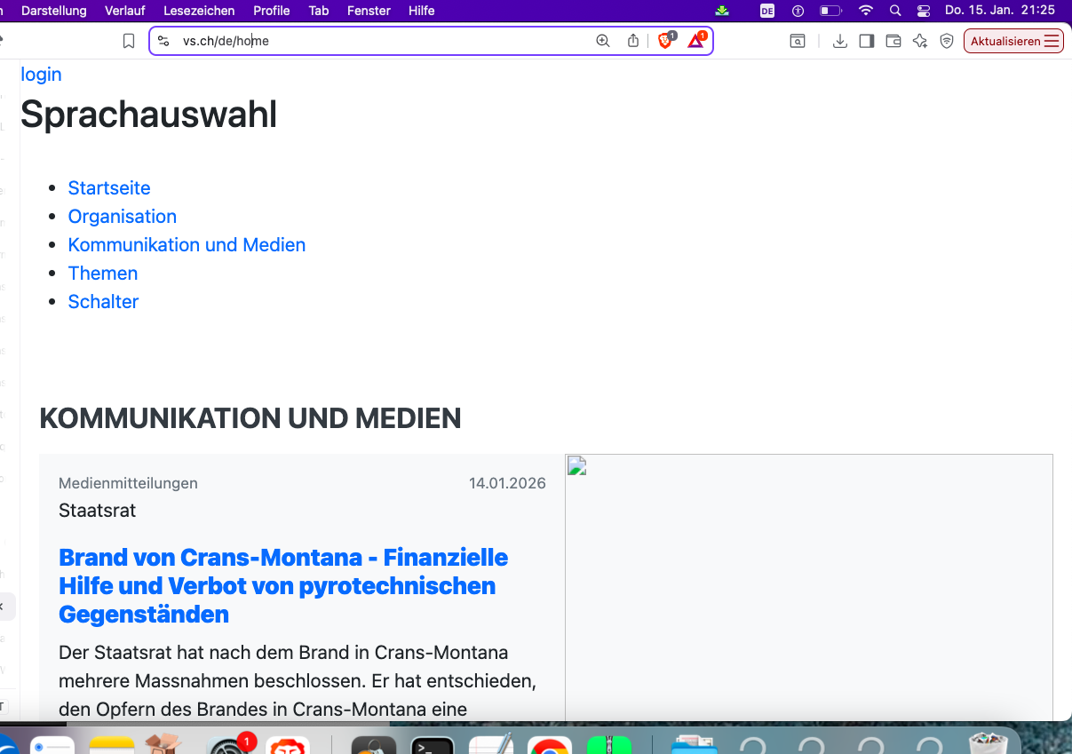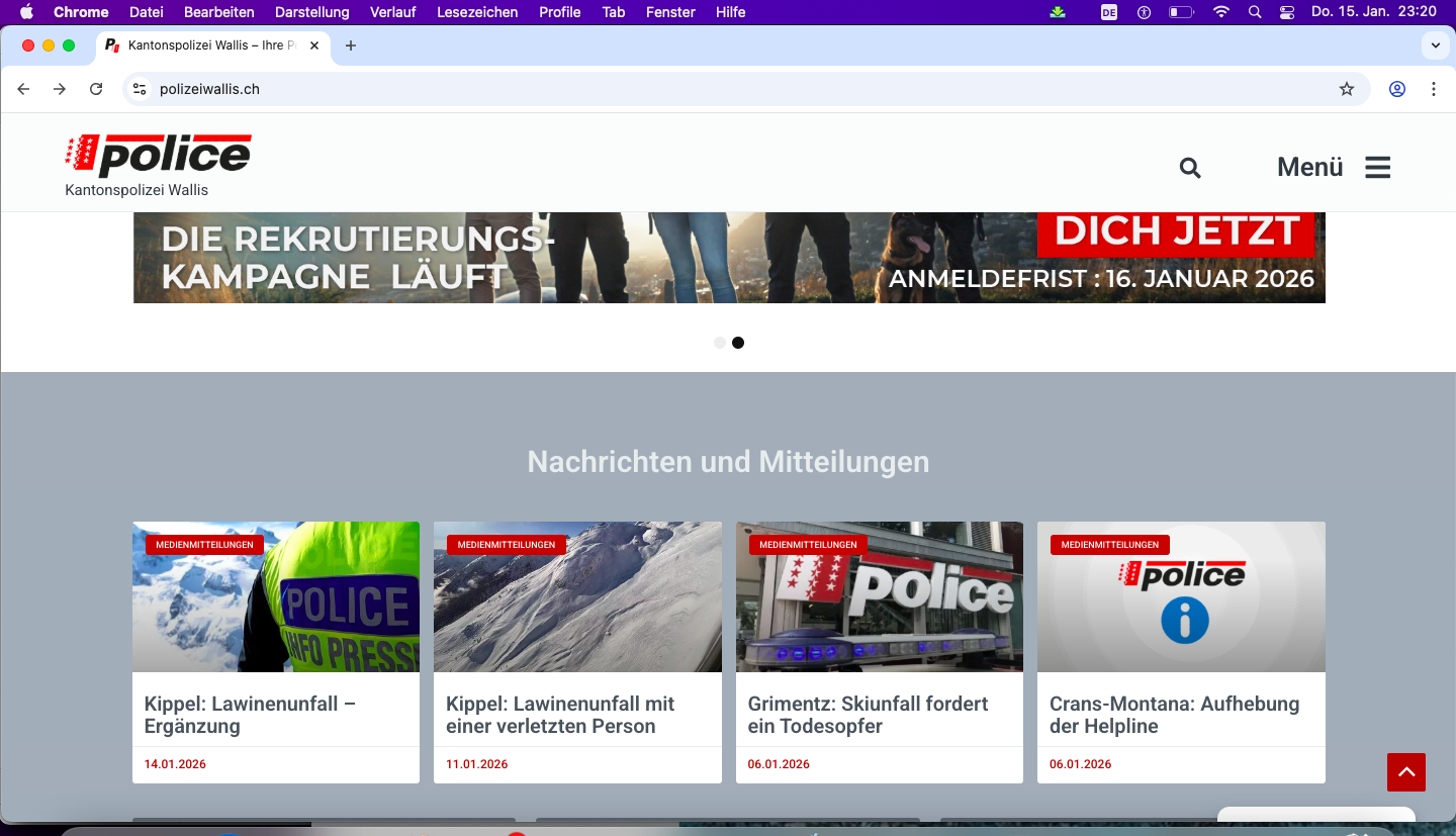 Wenig vertrauenswürdig auch die offizielle Webseite der Kantonspolizei Wallis hat aktuell – und dies bereits seit letztem Jahr Probleme. Klickt man auf die Polizeimeldungen erscheinen die Titel (Überschriften) nicht und die Bilder ebenfalls nicht.