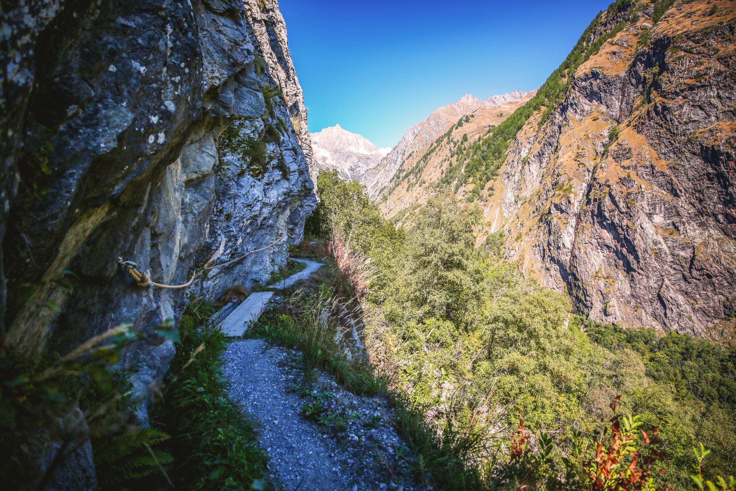 Der spektakuläre Bergwanderweg, der entlang steiler Felswände verläuft und atemberaubende Tiefblicke eröffnet, zählt zu den bekanntesten Suonenwegen der Region.
