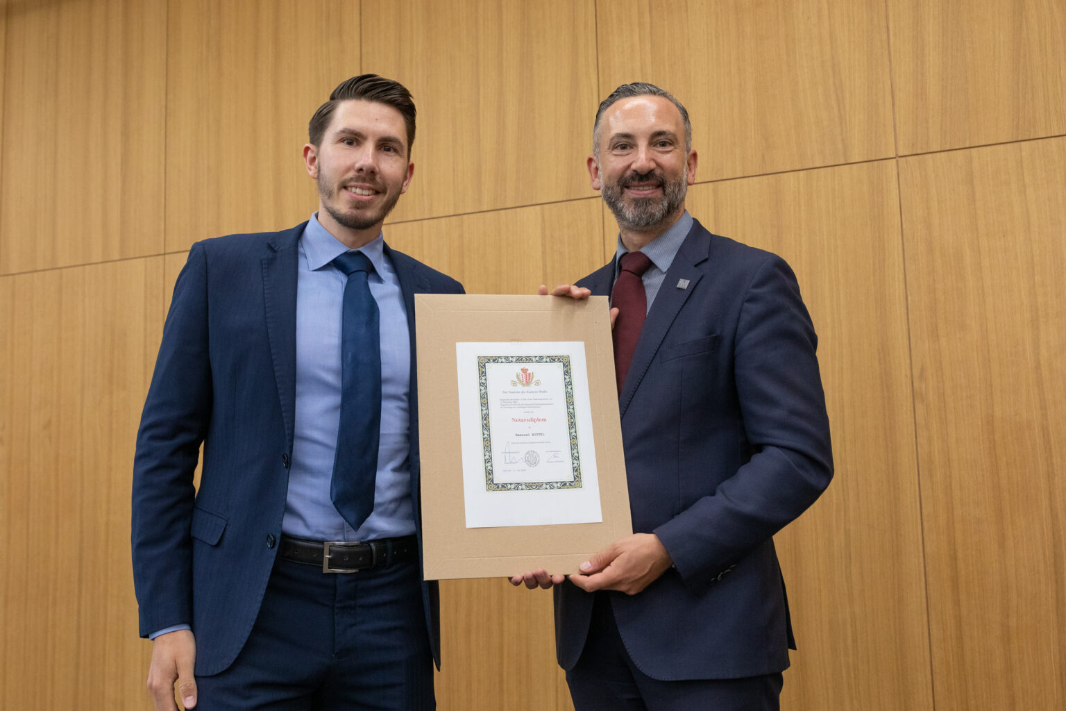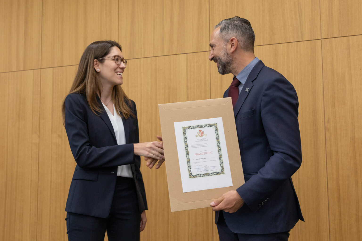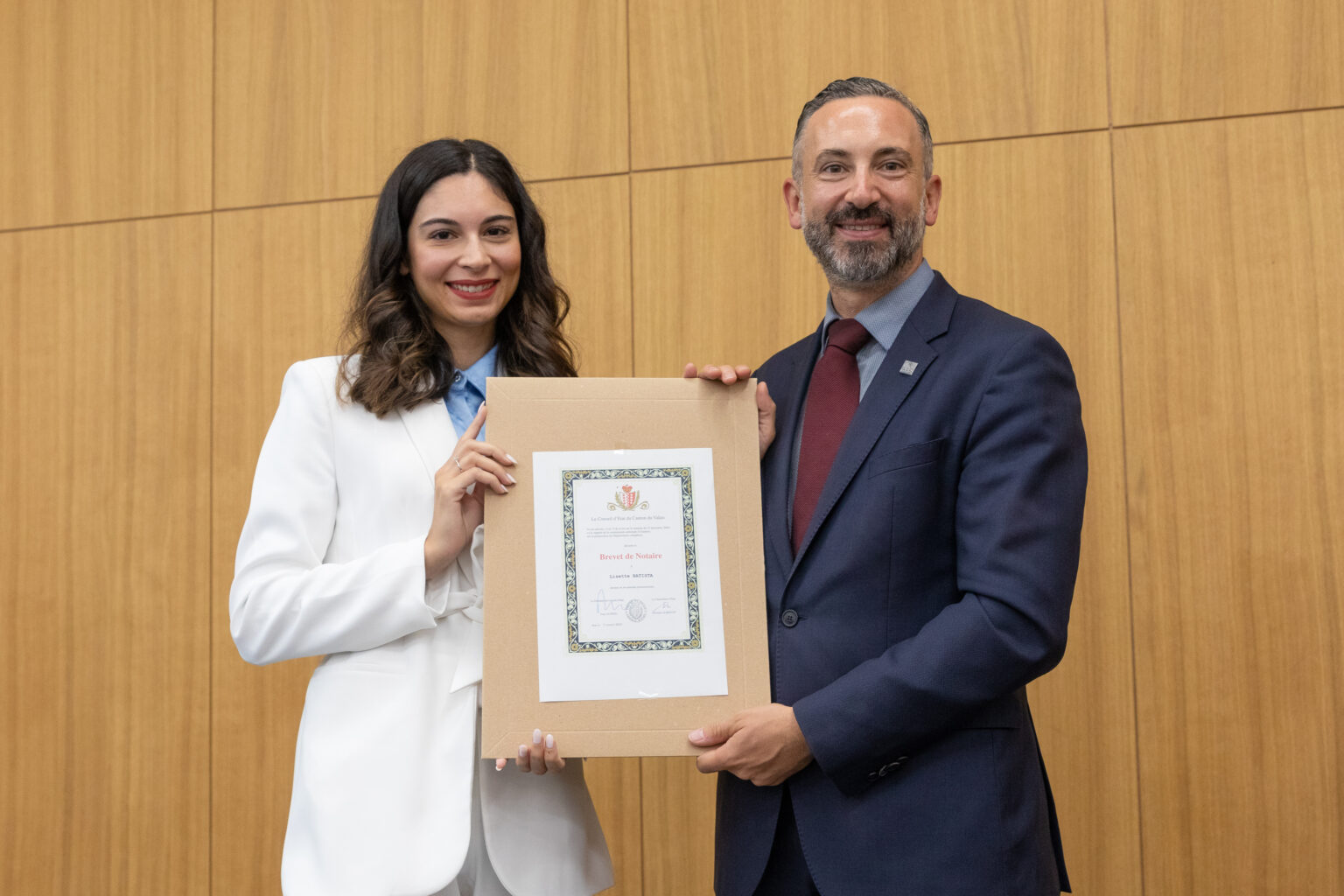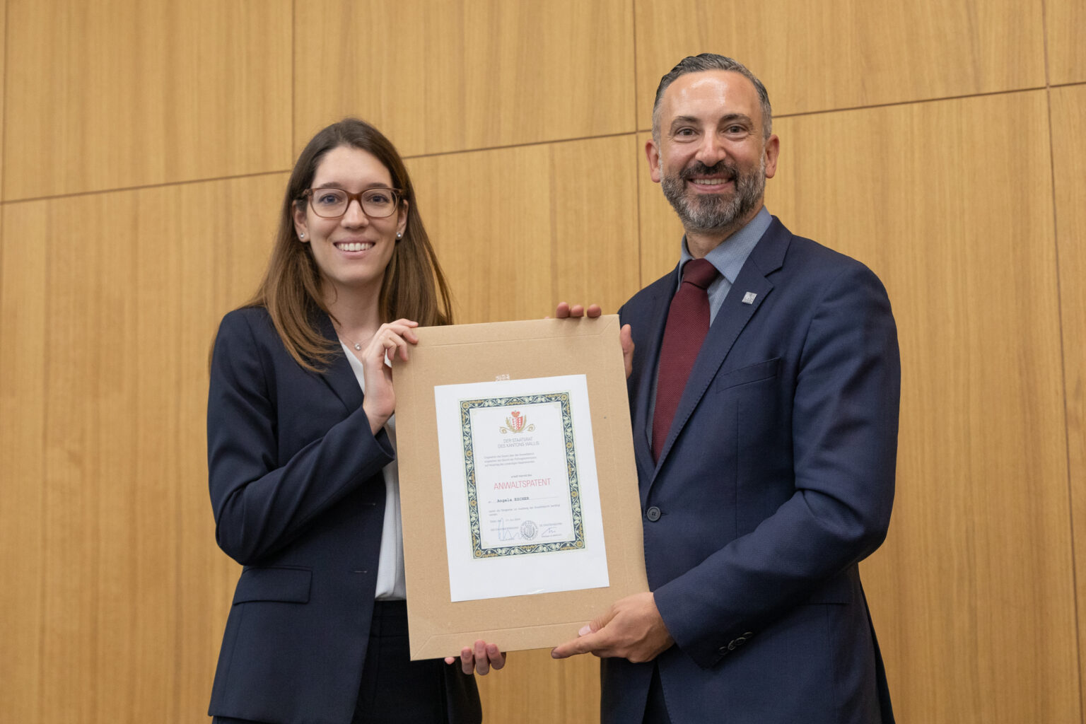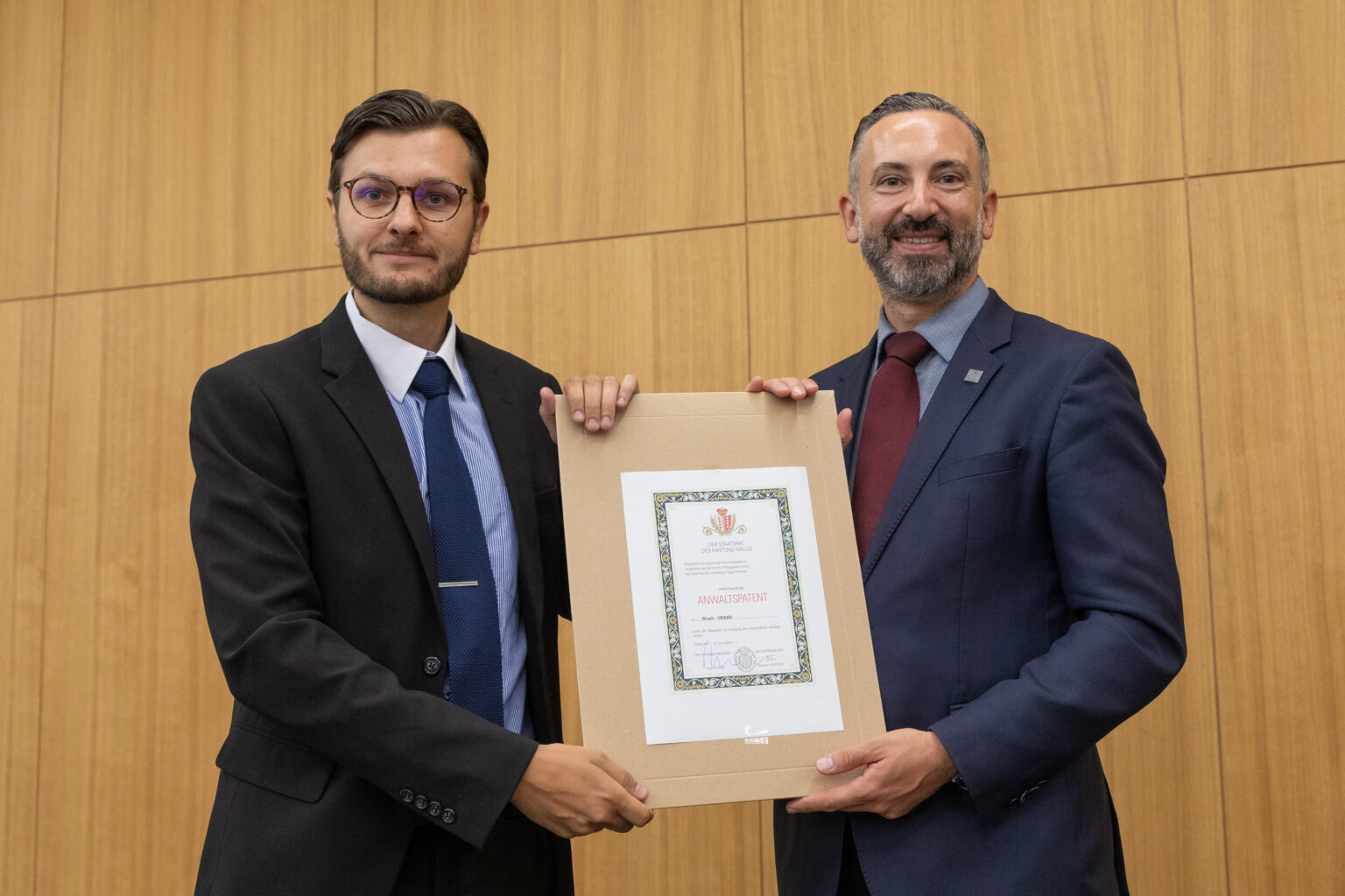 Zwölf Anwaltspatente und fünf Notarsdiplome wurden vom Vorsteher des Departements für Sicherheit, Institutionen und Sport (DSIS), Frédéric Favre, überreicht.