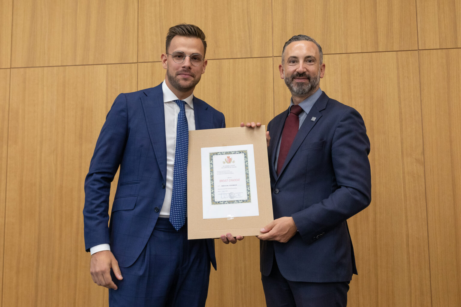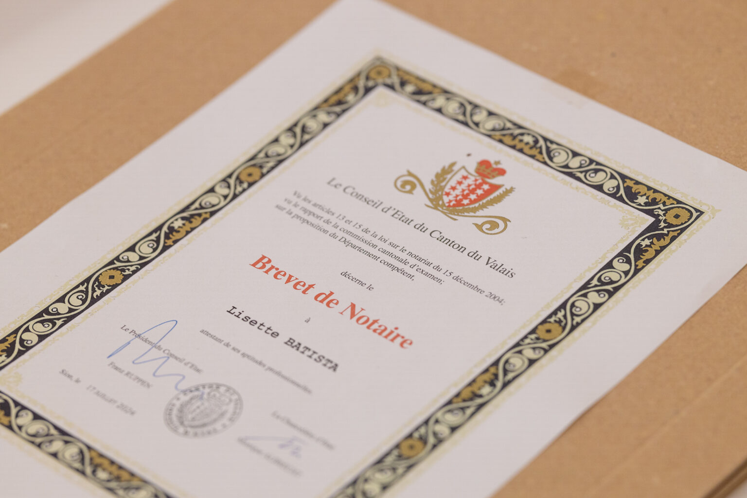 Die Zeremonie fand am 3. September 2024 in Siders statt. Anwesend waren Monique Albrecht, Staatskanzlerin, Natacha Albrecht, Präsidentin des Walliser Anwaltsverbands, Fabienne Murmann, Präsidentin des Walliser Notarenverbands, Jérôme Lorenzetti, Präsident des Vereins junger Walliser Anwälte und Notare sowie Sophie Huguet, Dienstchefin des Rechtsdienstes für Sicherheit und Justiz beim DSIS.