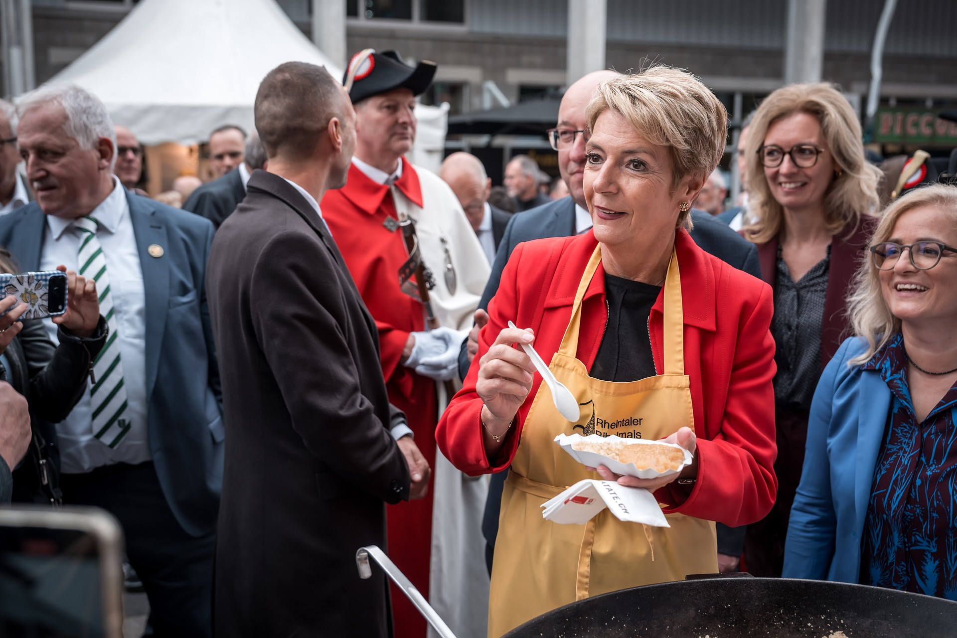 Nach der Feier besuchte die Bundespräsidentin gemeinsam mit dem St.Galler Regierungspräsidenten Beat Tinner, der St.Galler Stadtpräsidentin Maria Pappa, dem Walliser Staatsratspräsidenten Mathias Reynard und weiteren Vertretern aus der Politik sowie den Verantwortlichen der Olma-Messen St.Gallen die Messe.