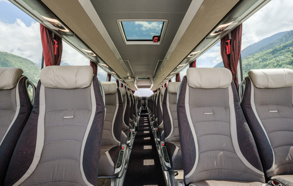 Diese neue Busgeneration setzt Maßtäbe: Ergonomische Komfortsitze, ein stimmungsvolles Ambientelicht, antivirale Klimafilter, das neueste Infotainment System sowie individuell einstellbare Service-Elemente schaffen ein Fahrerlebnis auf höchstem Niveau.